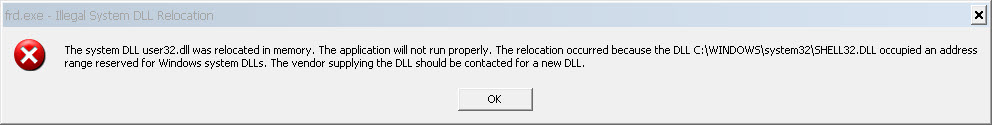 I have an error message when running frd.exe saying user32.dll was relocated.