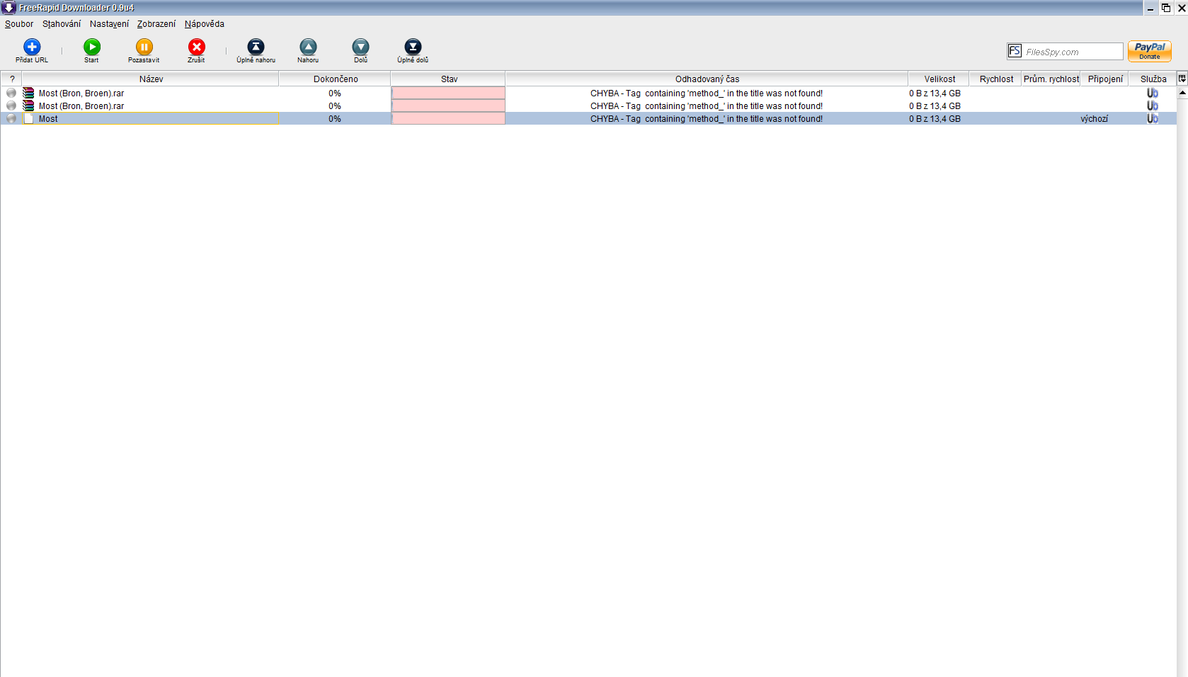 Hello. I need help with the program FreeRapid downloader. I can not download any file. On each, whether or ulož.to uptobox, my message appears: "Error - Tag conaining method in the file was not found!". Please, how can I fix it? Thank you.