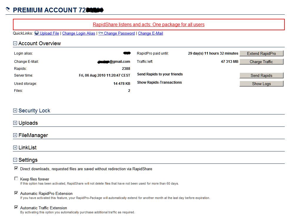 Re: Error login to Rapidsharecom Premium with FreeRapid August 14, 2010 11:15AM |