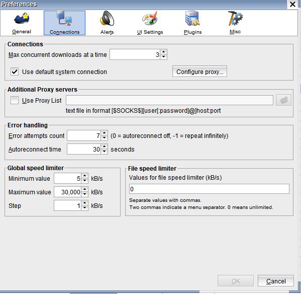 I didn't change any settings recently but no site will download faster than 4kb a second now. Have no clue why it suddenly started doing this. I use other downloaders as well (like Orbit Downloader) and those are not having the same issue, so I know it is not my internet. Any ideas? Included are screenshots of my current settings. They may not be default settings as I did change them after I downloaded it a long time ago but have not changed anything recently.